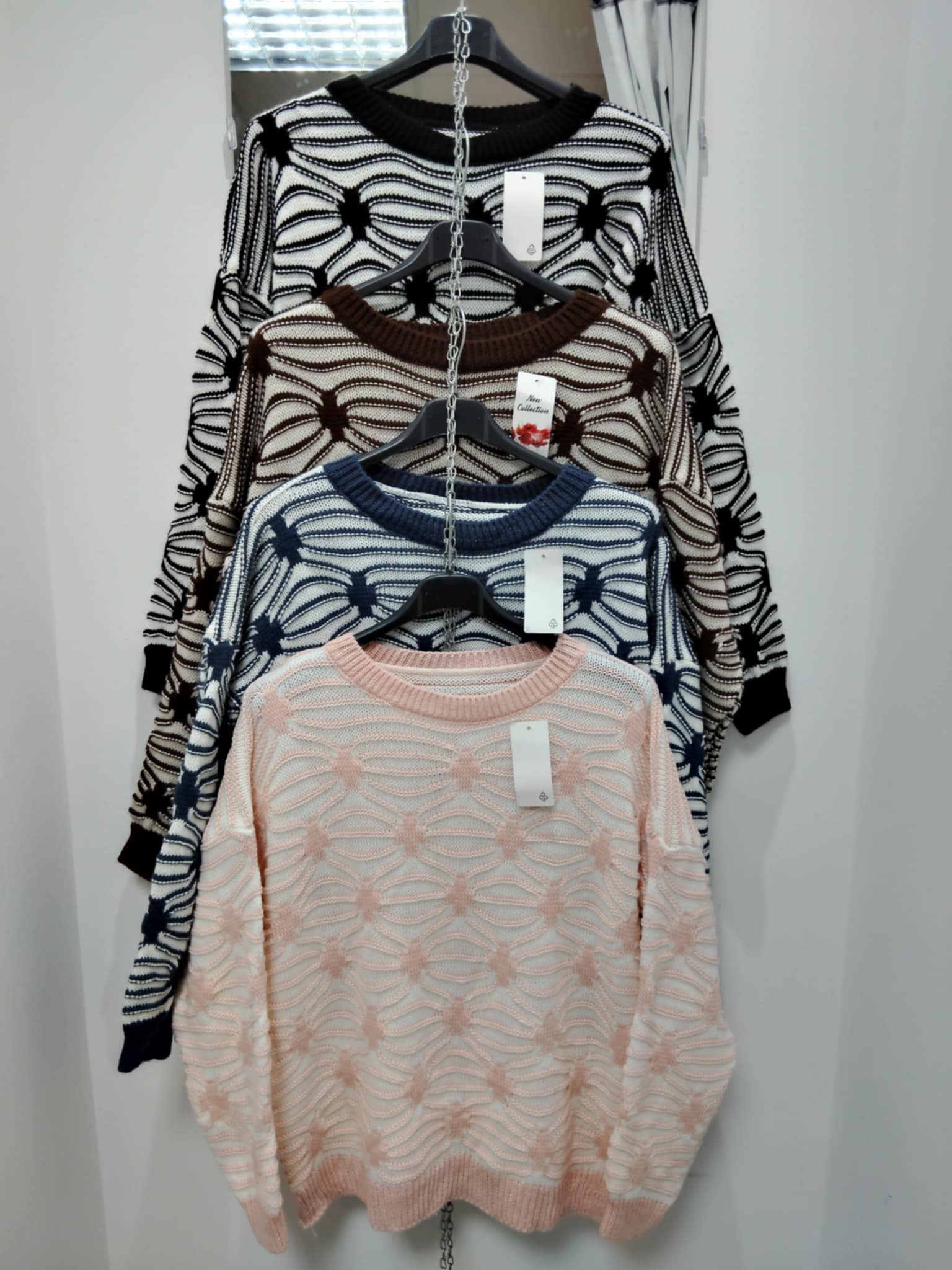 Ez a vastag, kötött női pulóver tökéletes választás a hideg napokra! Kerek nyakú, hosszú ujjú fazonja és csípőig érő hossza kényelmes, mégis nőies viseletet biztosít. A magában mintás anyag elegáns textúrát ad, a színváltozatok pedig könnyen kombinálhatók a téli ruhatár darabjaival. Meleg, puha tapintású anyagának köszönhetően ideális mindennapi viselet hűvös időben.