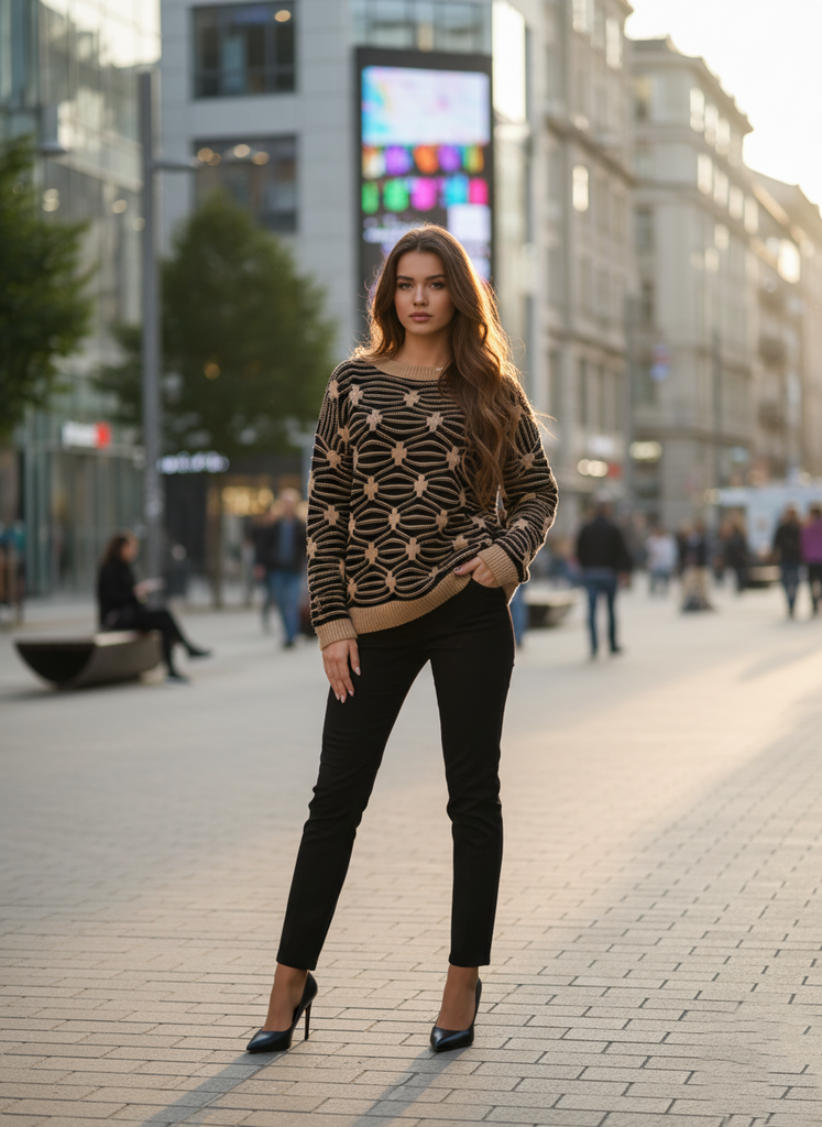 Női vastag kötött pulóver – meleg, mintás, stílusos