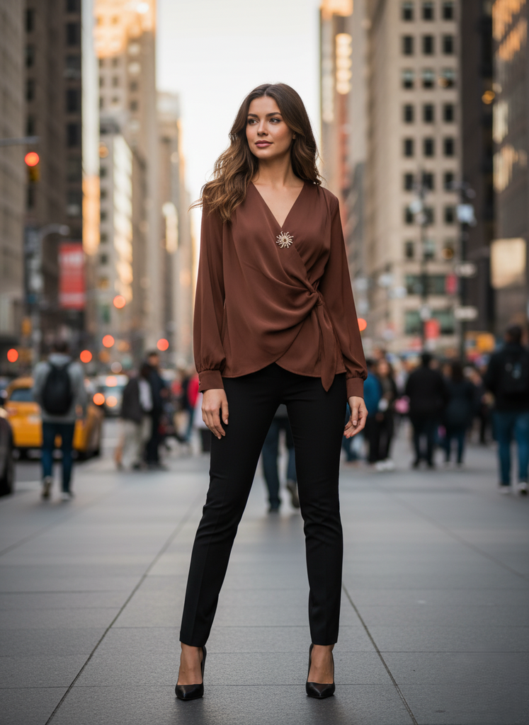 Alkalmi női blúz – V-nyakú, oldalt megkötős