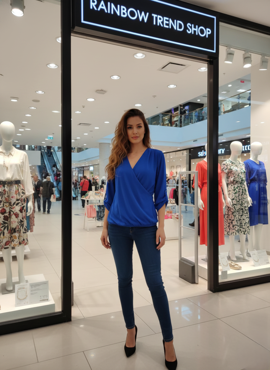Fedezd fel ezt a stílusos és kényelmes női felsőt, amely tökéletes választás a hétköznapokra és elegáns alkalmakra egyaránt! Az átlapolt elülső rész és a V-nyakkivágás nőies megjelenést kölcsönöz, míg a felgombolható ujjak praktikus viseletet biztosítanak. A gumis alsó rész kényelmes illeszkedést nyújt, amely kiemeli az alakot.