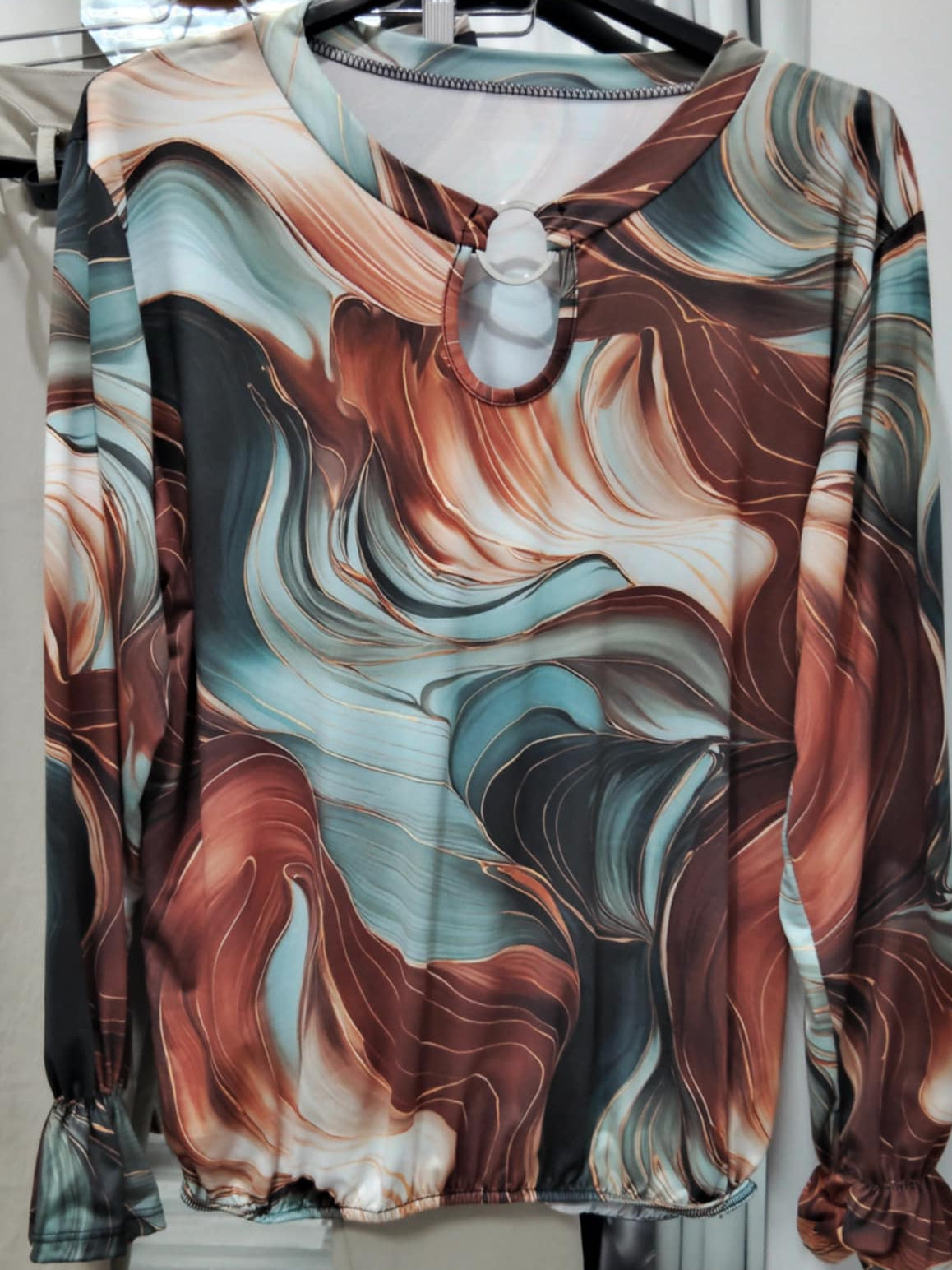 Modern Mintás Női Felső(M-3L) – Ezüst Karika Díszítéssel