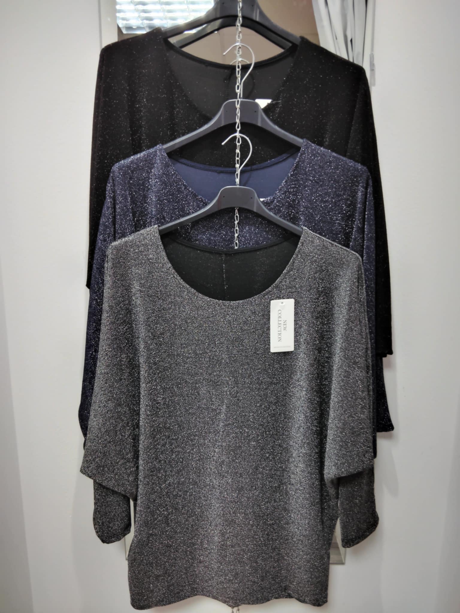 Női alkalmi felső – Plus Size, lurexszálas denevér ujjú