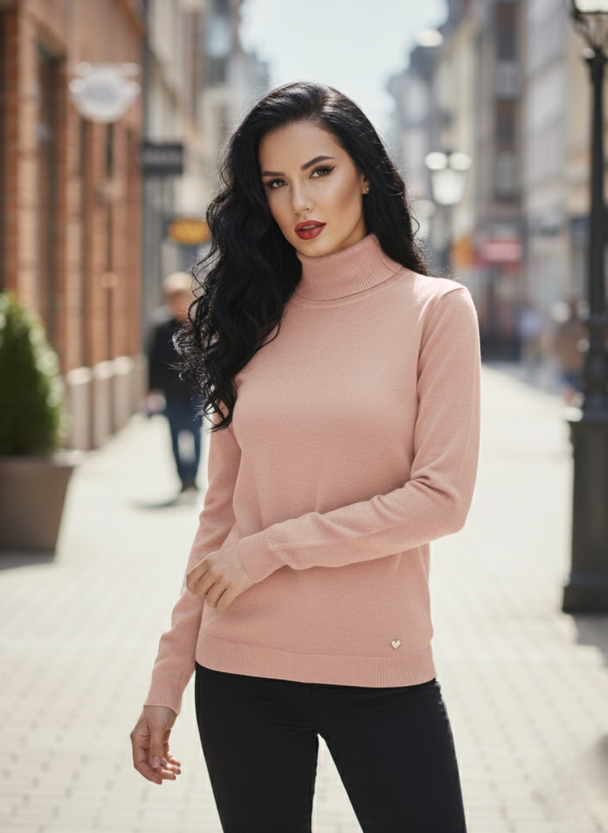 Ez a nőies, hosszú ujjú kötött garbó tökéletes választás a hűvösebb napokra és a réteges öltözködéshez. Puha, kellemes tapintású anyagból készült, amely rugalmasan illeszkedik a test vonalához. Klasszikus, elegáns fazon, amely önmagában és blézer vagy kardigán alá is tökéletesen hordható.