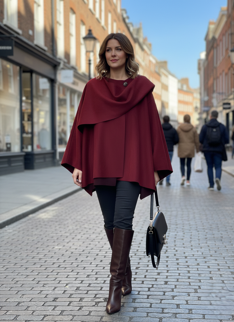Női poncsó fazonú kiskabát – bordó / sötétkék / fekete / khaki