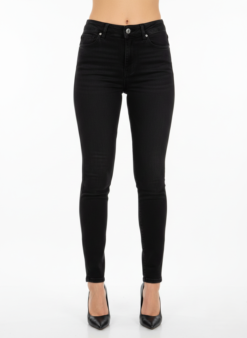 Találd meg a tökéletes farmert, ami nemcsak stílusos, de kényelmes is! Ez a mélyfekete modell speciális push-up szabással készült, amely optikailag formálja és emeli a fenék vonalát. A szűkített szárú (skinny) fazon és a rendkívül elasztikus, rugalmas anyag biztosítja, hogy a nadrág tökéletesen rásimuljon a lábakra, mégsem korlátozza a mozgást.