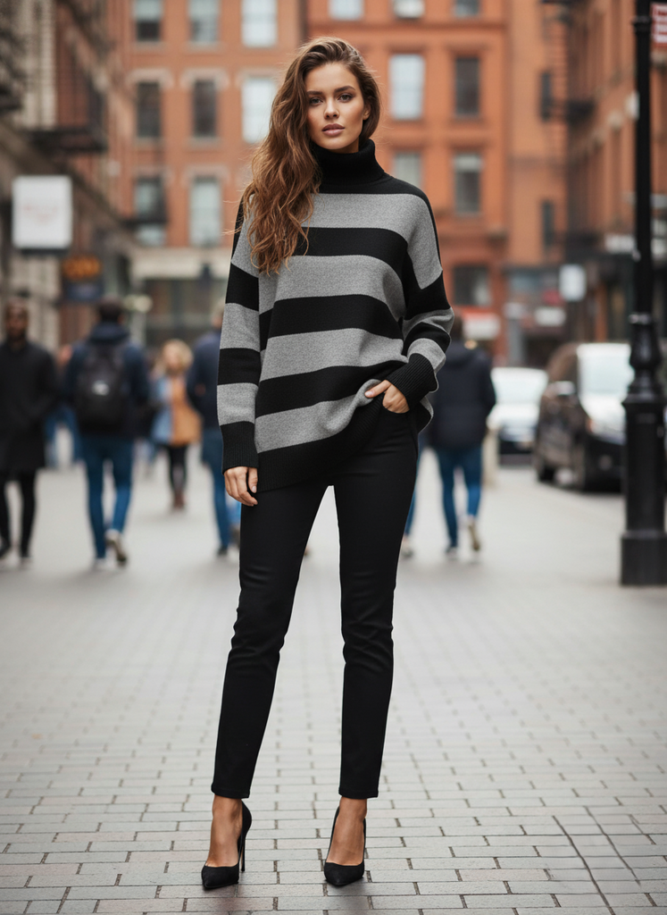 Női hosszított garbós kötött pulóver – tunikának is tökéletes ( S-2XL)