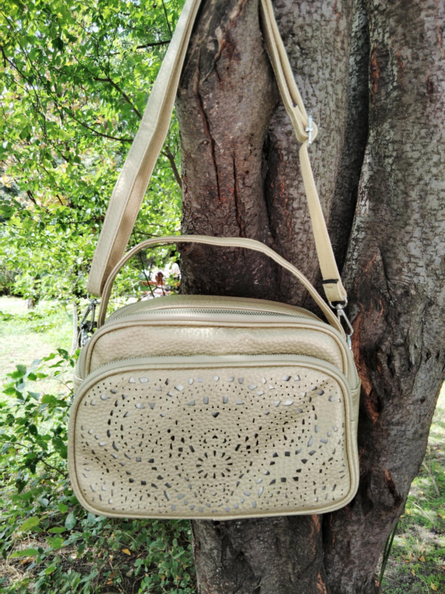 Elegáns és praktikus táska, amely egyszerre nőies és jól kihasználható a mindennapokban. Az aranyszín modern megjelenést biztosít, míg a hímzett hatású, áttört mintázat különleges, egyedi stílust kölcsönöz. Több rekeszes kialakításának köszönhetően rendszerezheted benne a szükséges dolgaidat, a cipzáras záródás pedig biztonságot nyújt.