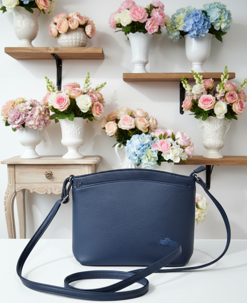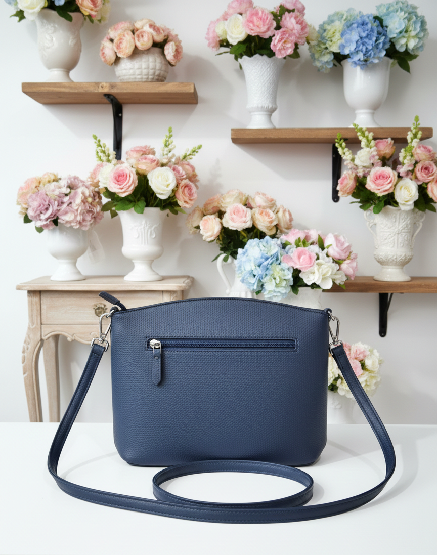 Praktikus és stílusos kis méretű női oldaltáska sötétkék színben, amely ideális választás a mindennapokra és utazáshoz is. Letisztult megjelenése könnyen kombinálható különböző öltözékekkel.