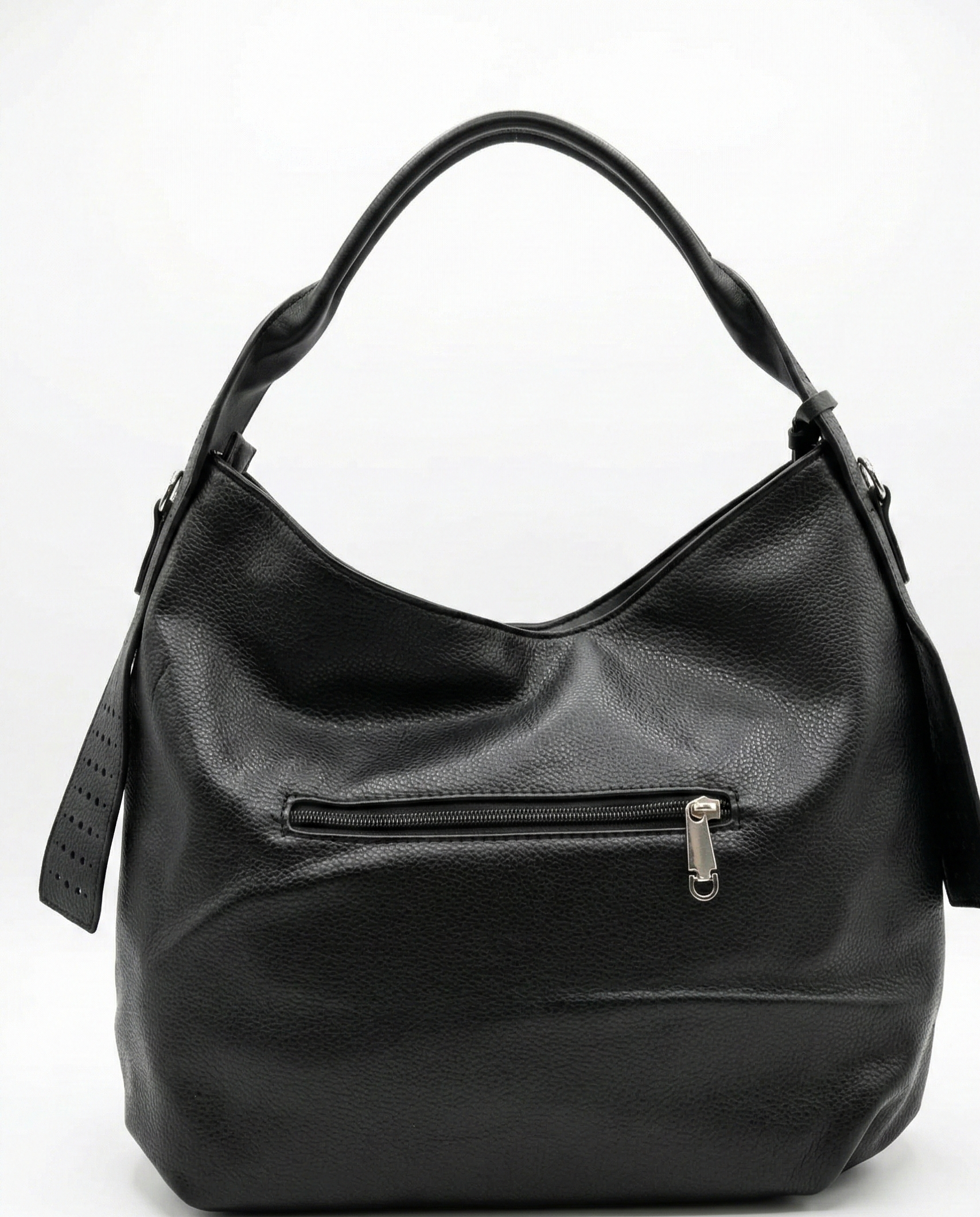 Kívül, hátoldalán 1 cipzáras zseb található a gyorsan elérhető tárgyak számára. Vállon és oldaltáskaként is hordható, az oldalpánt kényelmes viseletet biztosít.