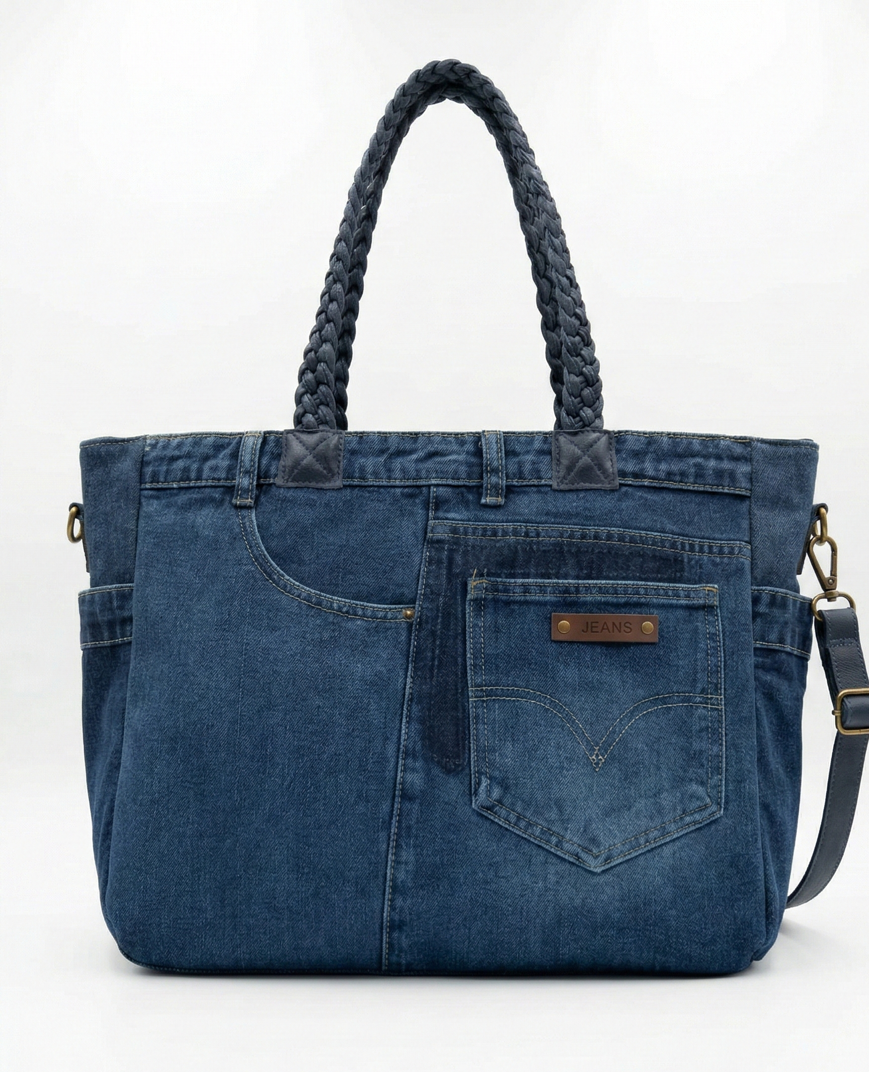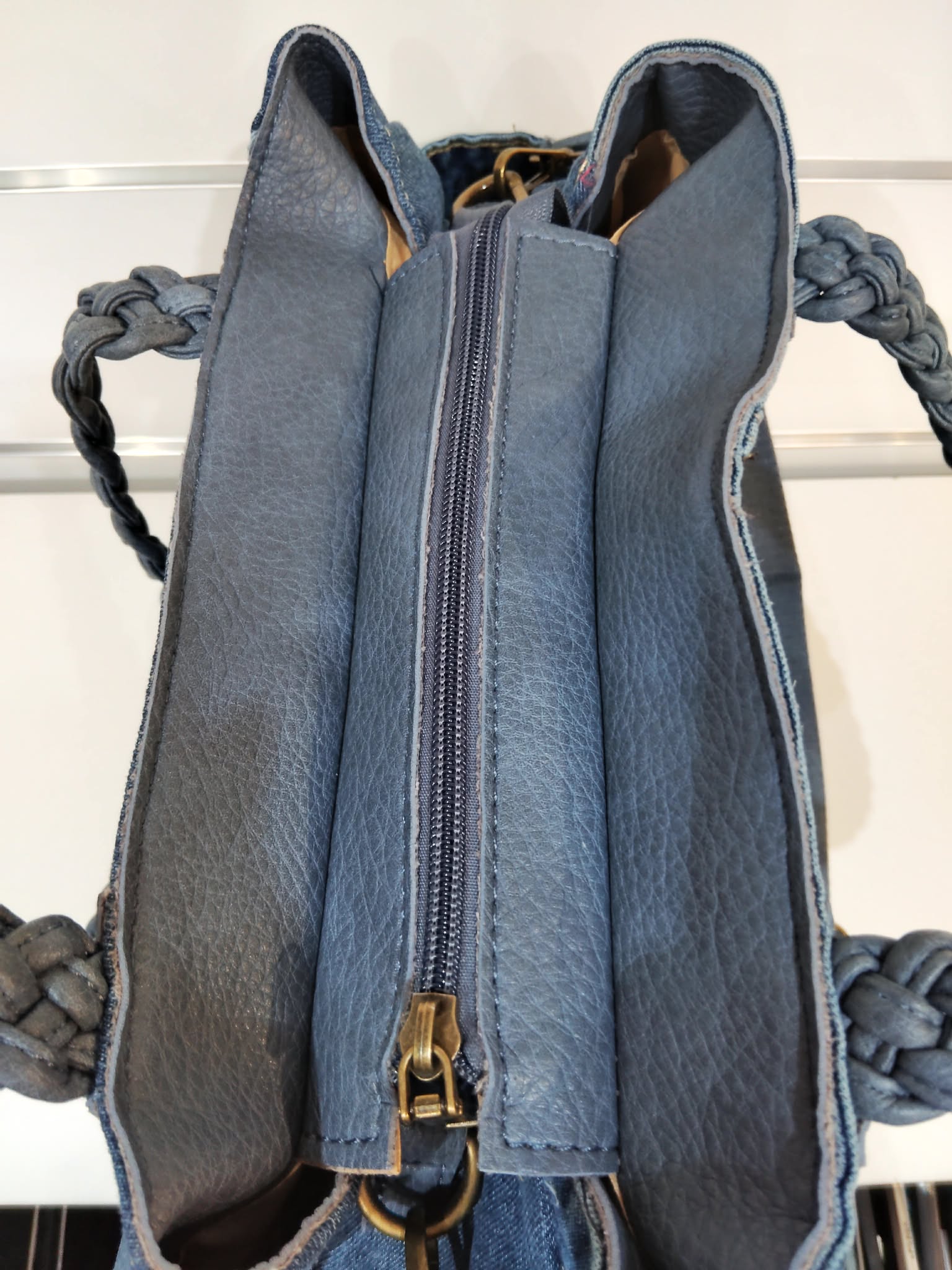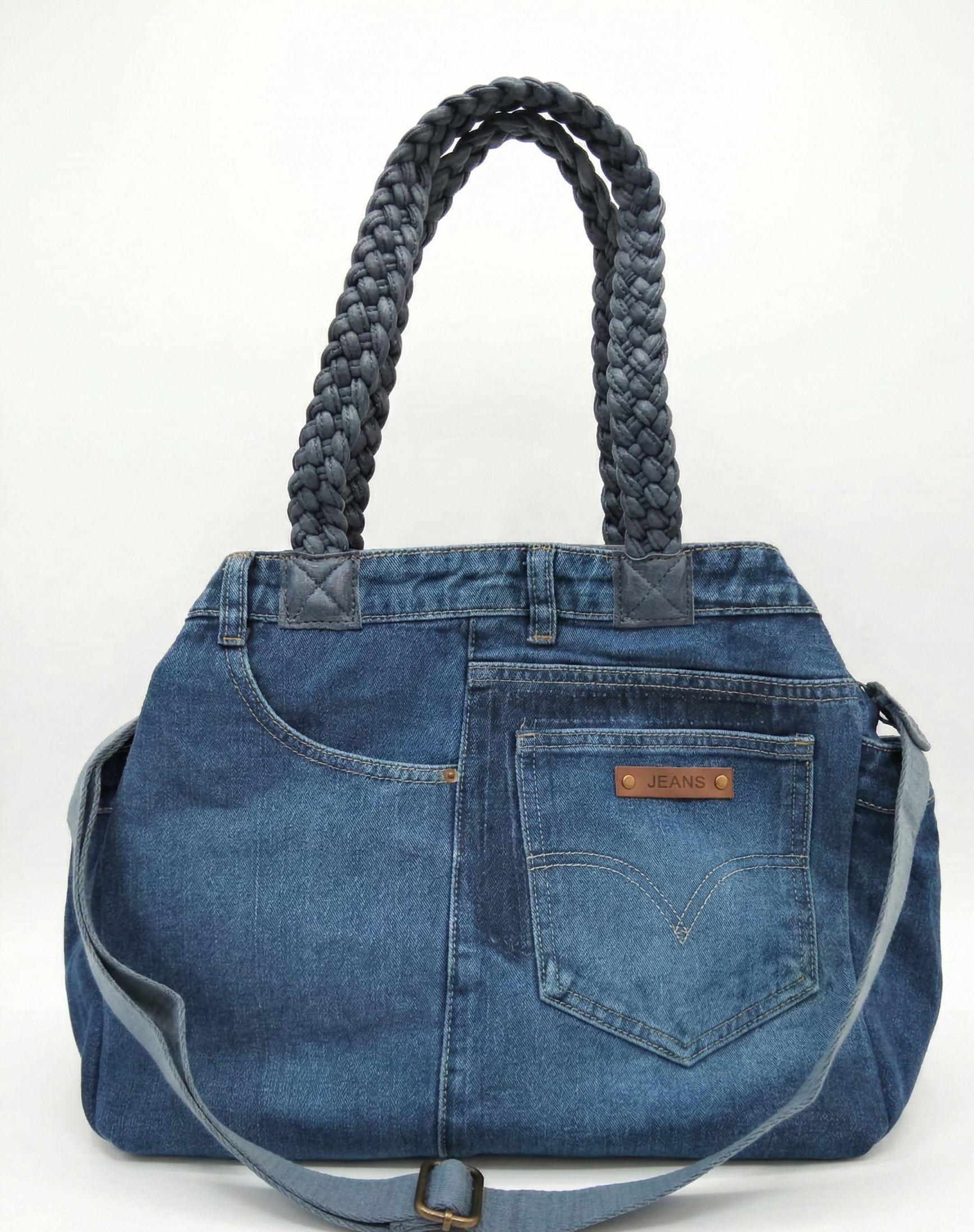 Női váll/oldal farmertáska – fonott vállpánttal