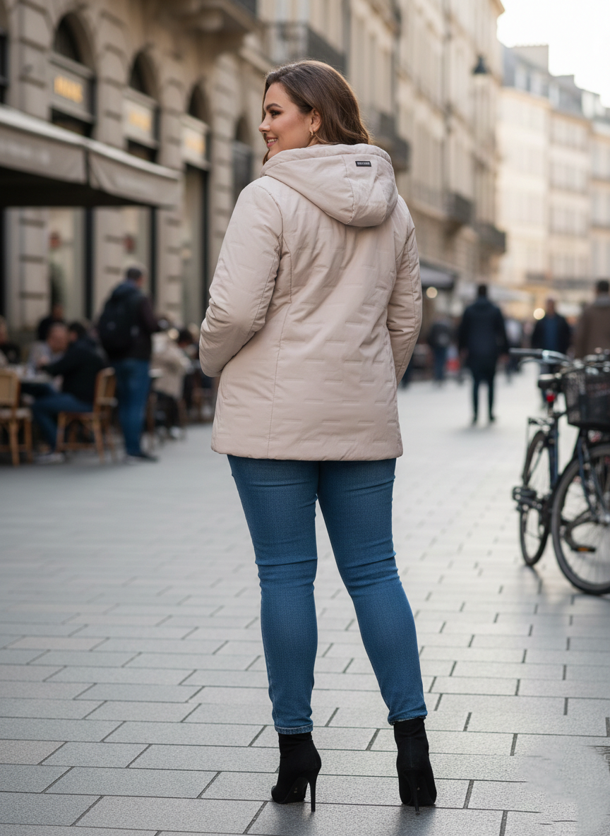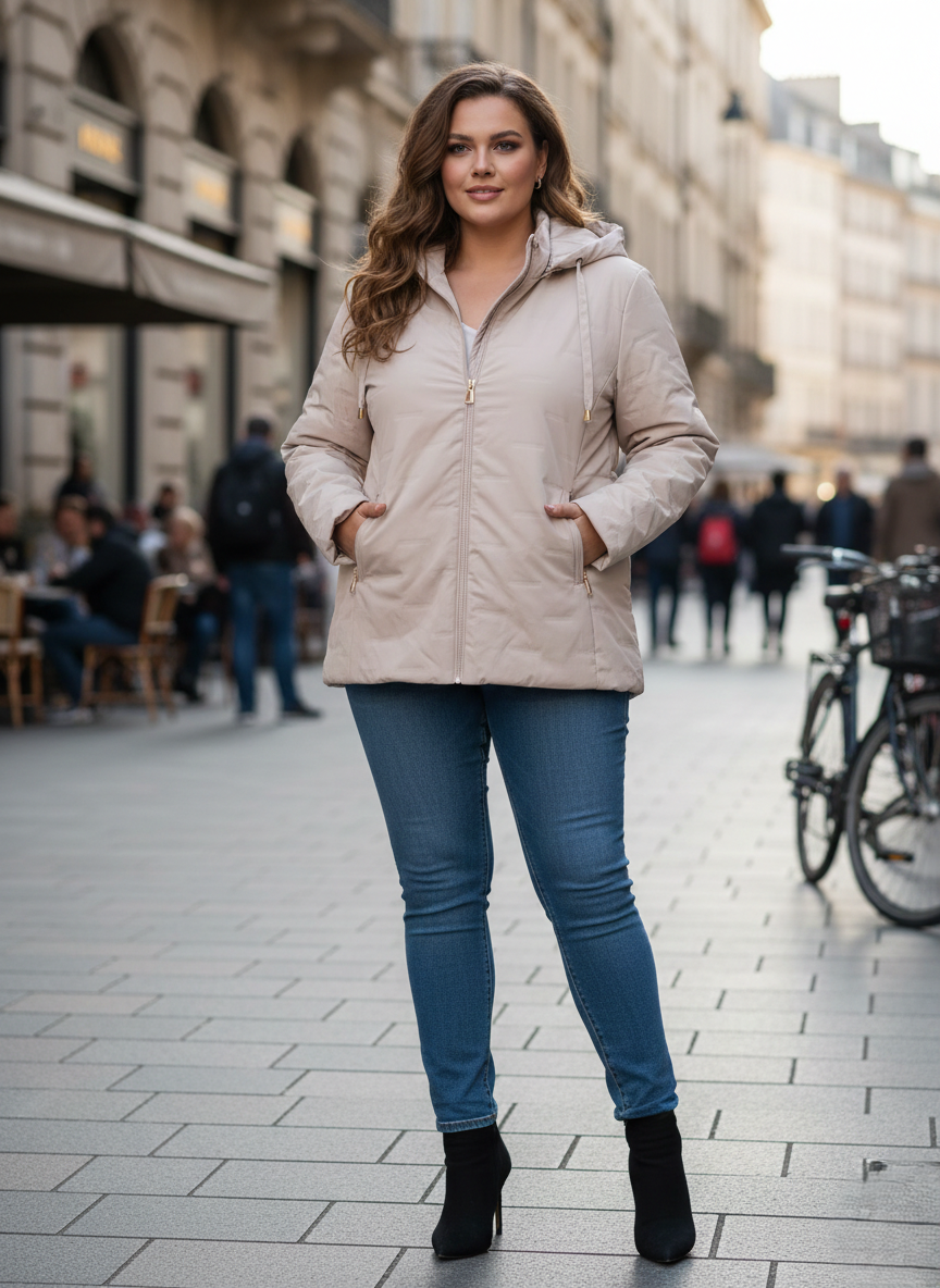 Frissítse fel tavaszi vagy őszi ruhatárát ezzel a stílusos, bézs színű átmeneti kabáttal, amelyet kifejezetten a telt idomokra terveztünk! Ez a darab a funkcionalitás és a modern elegancia tökéletes ötvözete, ideális választás a mindennapokra, legyen szó munkáról vagy egy hétvégi sétáról.